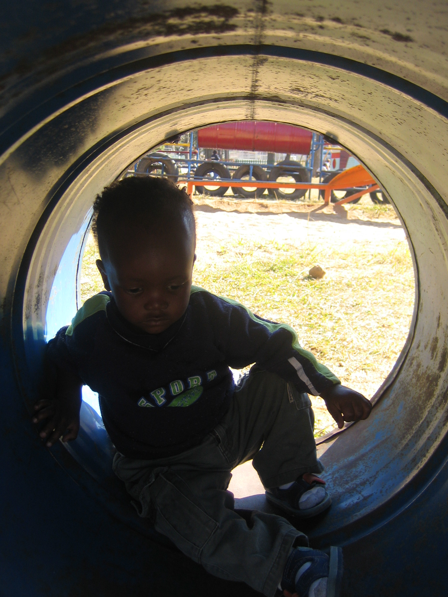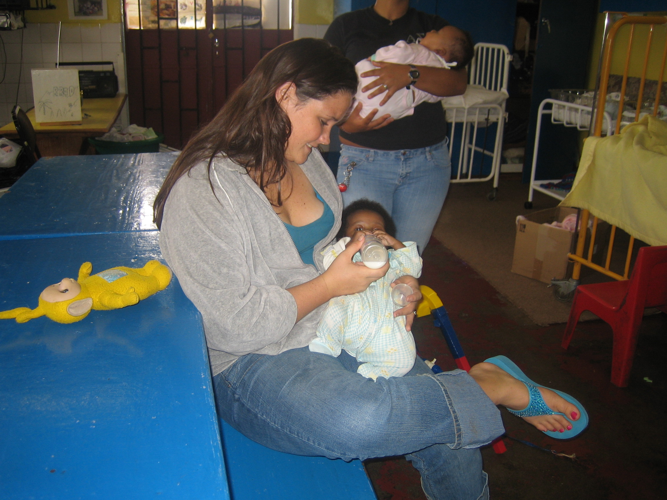 What I couldn’t understand about the situation at Ward 8 was the fact that the nurses seemed so apathetic and disinterested. A lot of toys had been supplied and were stuffed into a cupboard and never taken out. The walls were bare. Food was very basic and the older children slept on old mattresses on the floor with no-one to ensure their safety at night. There was a playground at the back of the hospital just behind the room which housed these children and the grass was overgrown. Our plan at the start of the project was to cut the grass and paint the swings and slides so that they could be used. But this was discouraged as the nurses wanted us to take the babies off their hands in the afternoon.