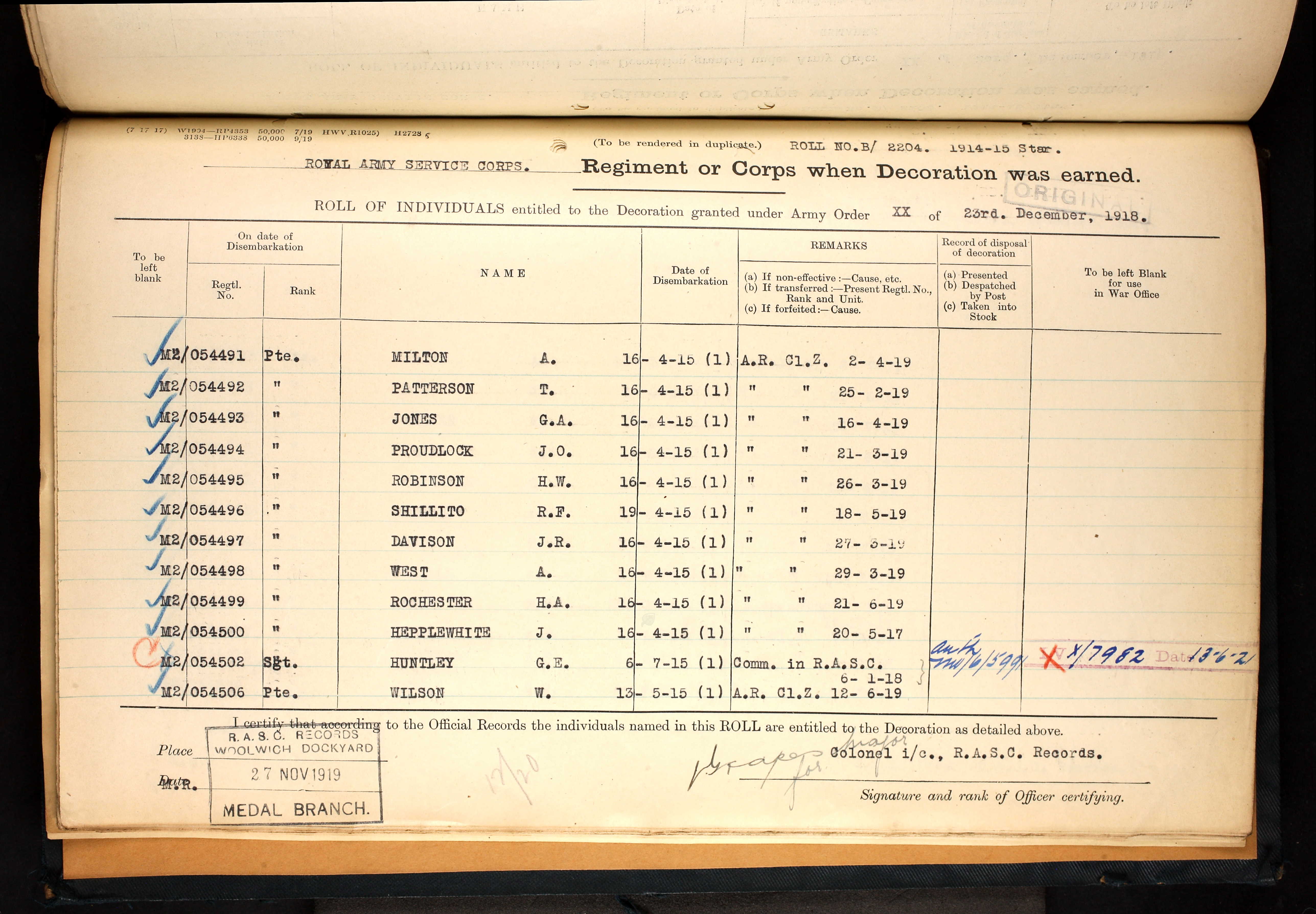 George enlisted under a short-service (duration of war) engagement in the Army Service Corps (Mechanical Branch) at Sheffield on 18/03/1915. He was issued with the regimental number M2/054502 – the ‘M2’ prefix denoting the Mechanical Transport Branch, and the ‘0’ at the front of his number denoted a short-service/duration of war engagement.