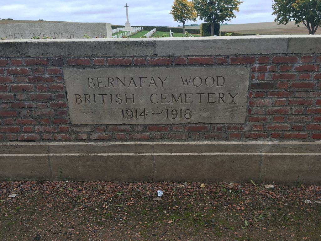 In October 2017, I visited France with my son and a friend on a day trip. We visited the British cemetery at Bernafay Wood which is mentioned in the war diaries for the first time on 8th August 1916. There was an Advanced Dressing Station (ADS) here.