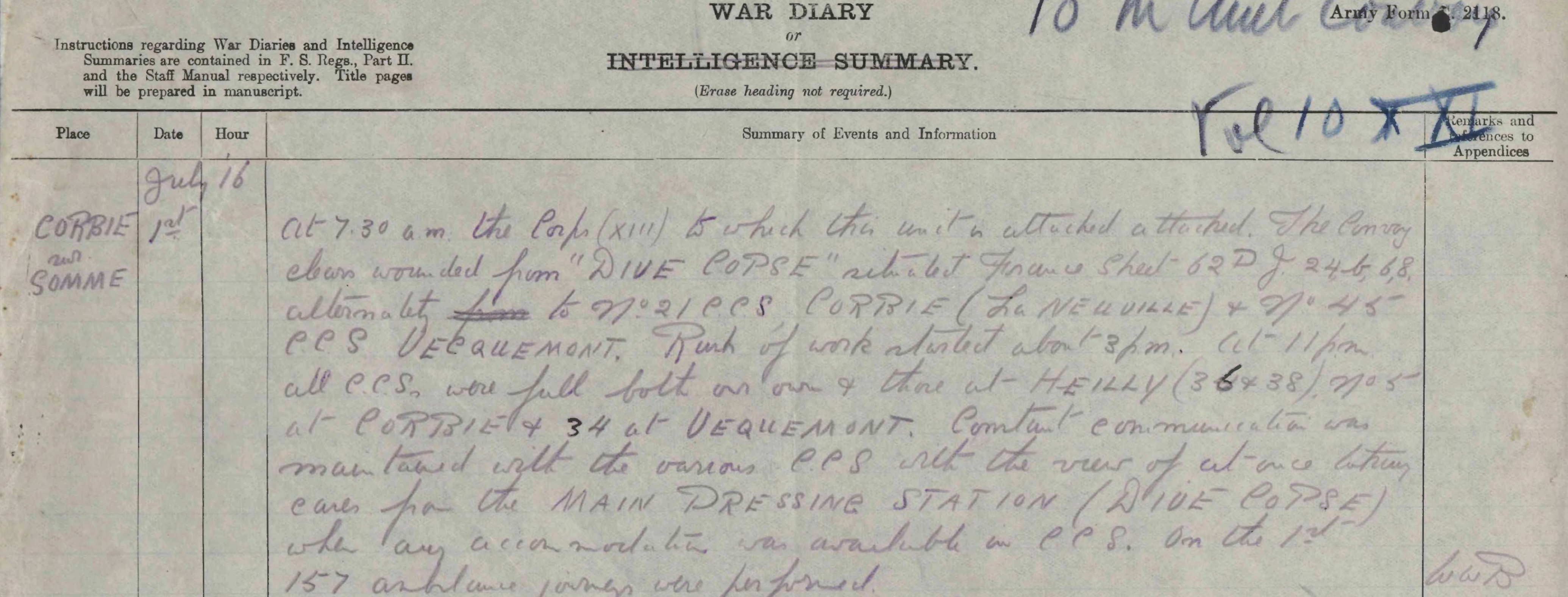 On 1st July 1916 the British attacked at the Somme. The 10th Motorised Ambulance Convoy was in support of the XIII Army extracting dead, sick and wounded from the Main Dressing Stations near the front line.