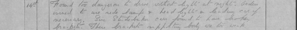 The Siddely-Deasy cars almost immediately began to overheat. The solution was to alter the vanes on the flywheels to allow a better draft of air. The carburettor jets were also altered to conserve fuel. The Daimler cars “gave great trouble through gear slippage,” and ” … also break ball races constantly” (Captain W. W. Boyce). Spare parts were in short supply such as gear wheels and replacement tyres. It is likely that my grandfather would have been supervising this work.