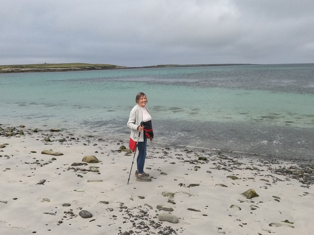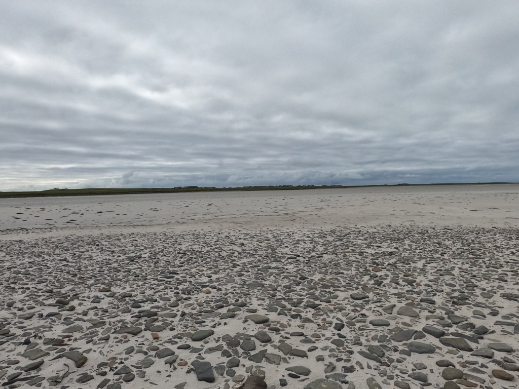 In July this year, my mother (who lives in Sussex) and I flew from Heathrow up to Kirkwall on a Loganair Flight. We visited Orkney , the islands immediately to the north-east of Scotland north coast, last year in June. We had stayed on the main island (known as the mainland) last year in a little village called St Margaret’s Hope on the island of South Ronaldsay. This time I had planned a longer stay with the first 5 nights on the isle of Sanday and the next six nights in St Margaret’s Hope. We landed in Kirkwall on a Monday afternoon amidst the typical summer fog. The runway only appeared out of the mist at the last minute. We were met at the airport by the people at Orkney Car Hire (thoroughly recommended) and picked up our car. After a couple of hours in Kirkwall, we drove onto the roll-on roll-off ferry to Sanday. The trip is about 1.5 hours and the seas were relatively calm. I had booked a cottage near the little village (the only one on the island) known as Lady Village. It has a community centre, petrol station and store as well as a cluster of houses and that is about it. About one mile away is the airstrip. Flights from Kirkwall arrive here. Loganair operate Britten-Norman Islander aircraft for the inter-island services. We watched one landing – it was an interesting sight.
