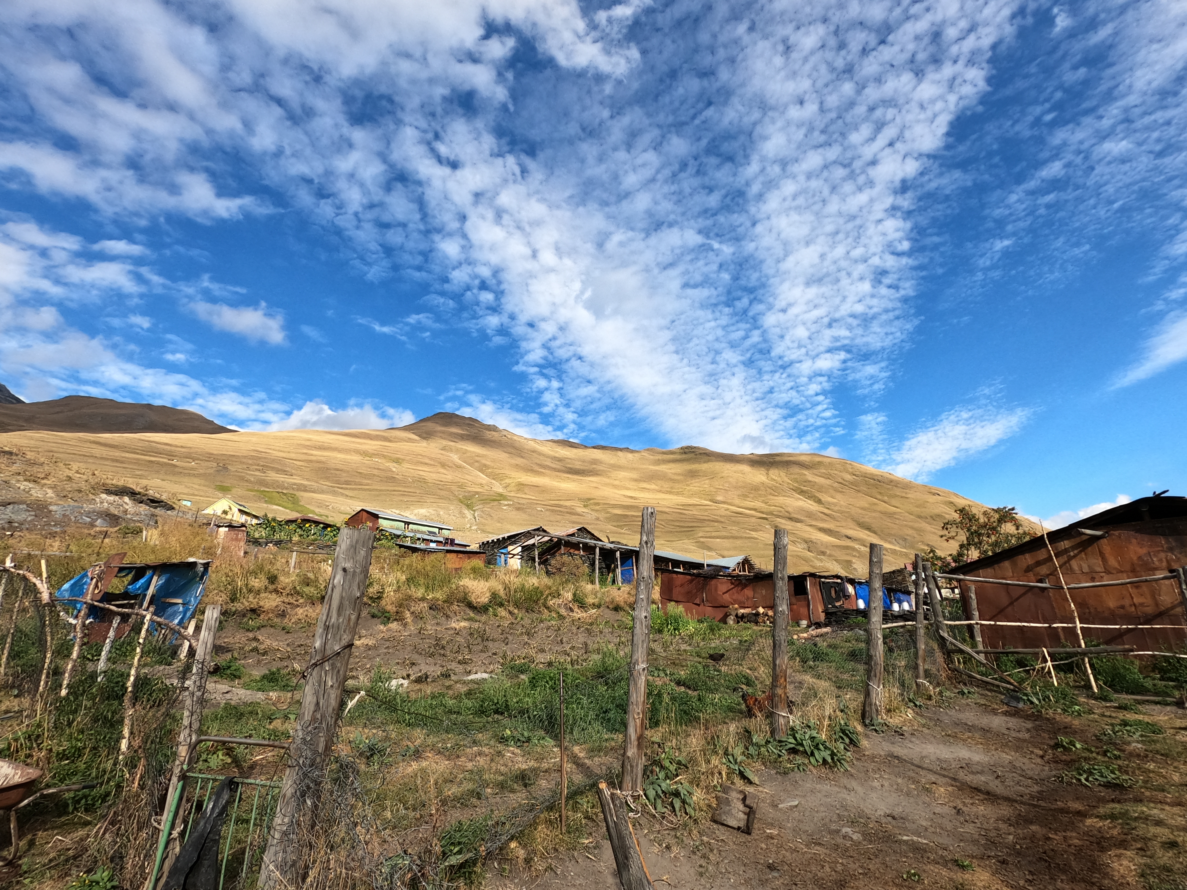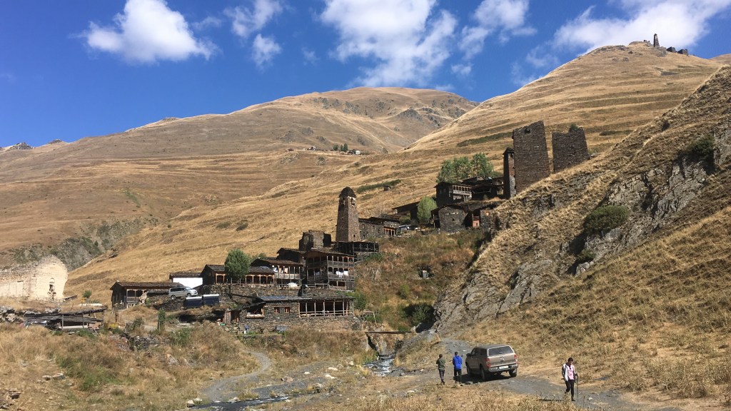 The weather was dry and in fact there had been very little rain this summer. The region is cut off from the rest of Georgia in the winter and only a few shepherds stay here then. Access in winter is only possible by helicopter because the dirt road is impassable.